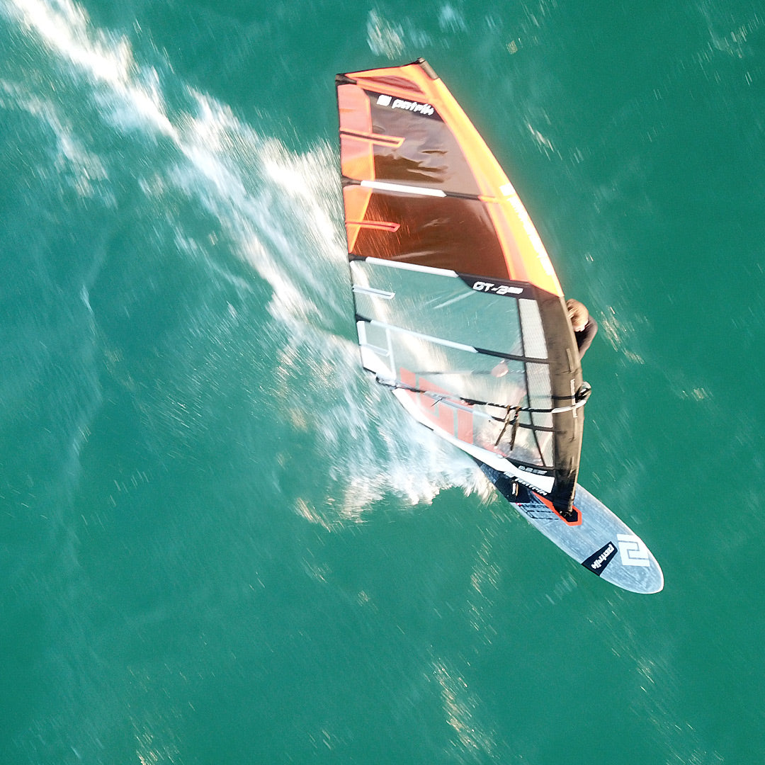 Cette planche est une adaptation du shape de compétition pur DEFI LTD pour vous offrir une navigation plus facile à la limite et dans les grosses rafales. Une ligne centrale plate allongée ajoute un excellent contrôle et une excellente stabilité sans trop compromettre la vitesse de pointe. L'outline a été allongé au centre, de sorte que la courbe du tail et du nose reste inchangée comme sur la DEFI LTD. Patrik Diethelm a opté pour des concaves légèrement plus profonds pour rendre vos descentes à grande vitesse un peu plus fluides dans le clapot. Le rocker arrière et le vee arrière sont exactement les mêmes que sur la LTD. Les footstraps ont été légèrement déplacés vers l'intérieur et le rail de mât est positionné plus en avant que sur la LTD pour un accès plus facile et une navigation moins extrême.